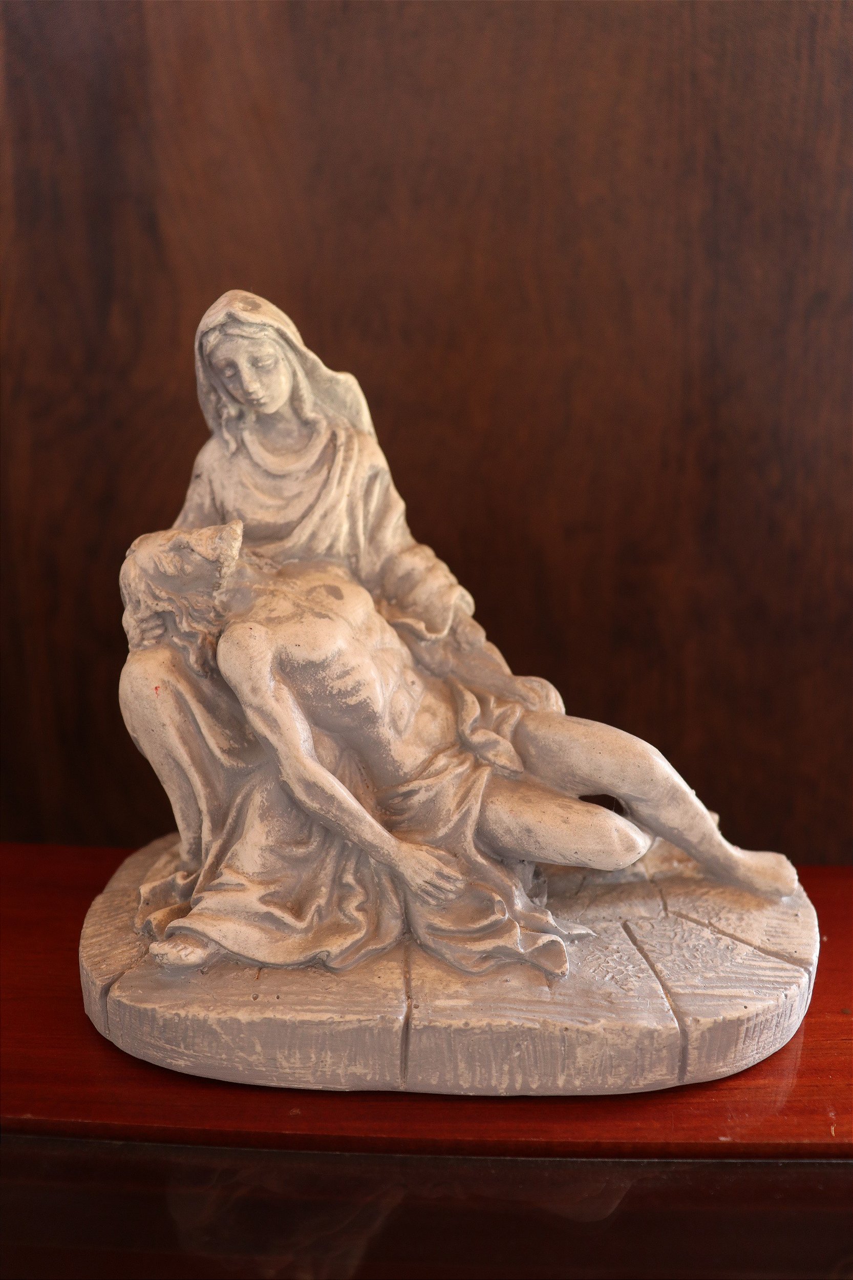 Essa Pietá possui um variação de dois tamanhos para você escolher: 20x23 cm 12 x 15 cm