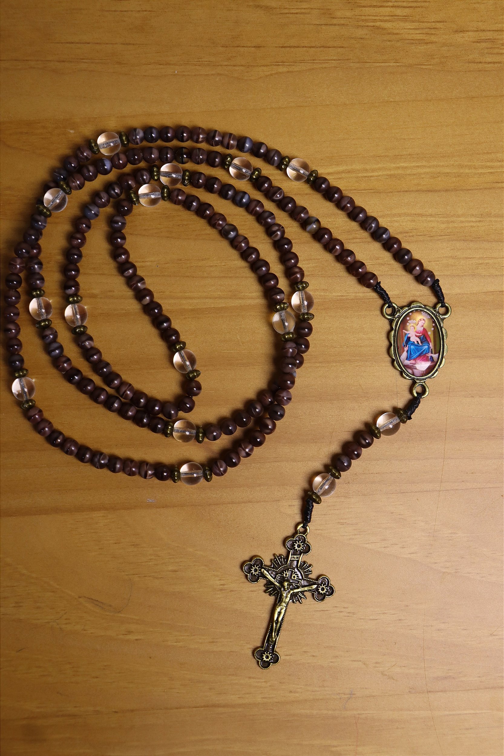 O rosário foi fabricado com materiais de qualidade e durabilidade.