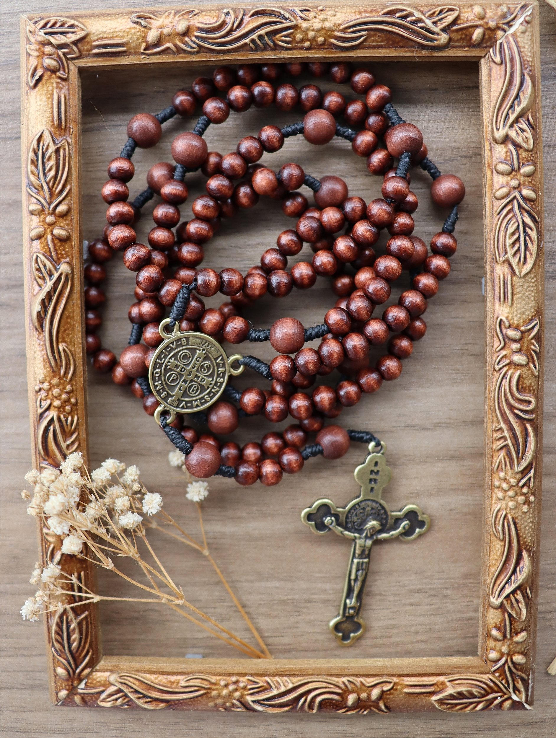 O rosário foi fabricado com materiais de qualidade e durabilidade.