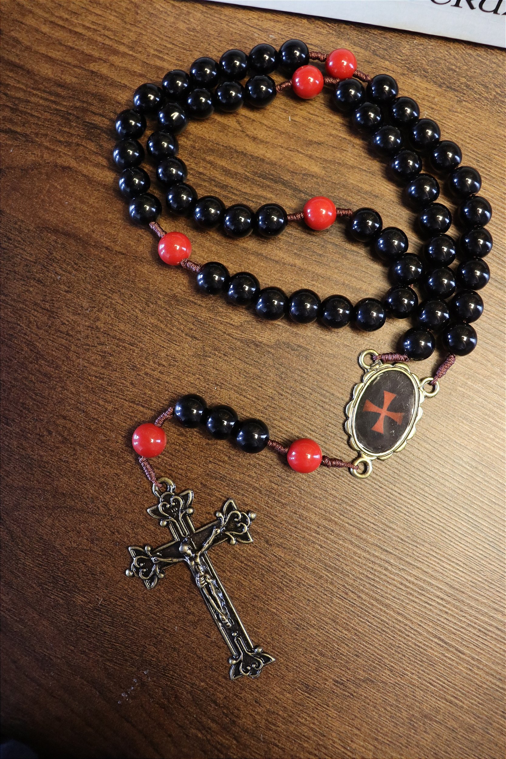 O Terço Templários foi fabricado com materiais de qualidade e durabilidade. Com cordão pedro e pedras de 10 mm.