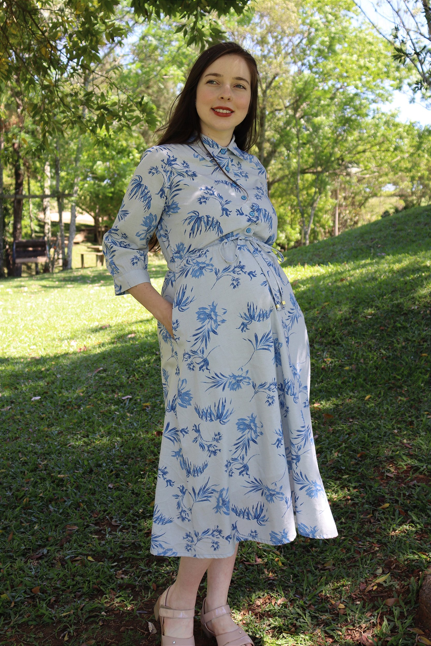 - Vestido midi com faixa embutida na cintura para ajuste